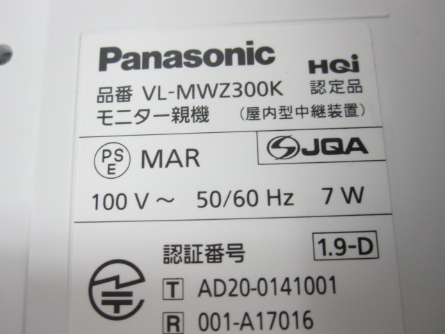 Panasonic パナソニック VL-MWZ300 モニター親機 ドアホン 通電OK