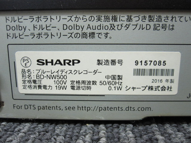 SHARP シャープ BD/HDDレコーダー BD-NW500 16年製 ジャンク