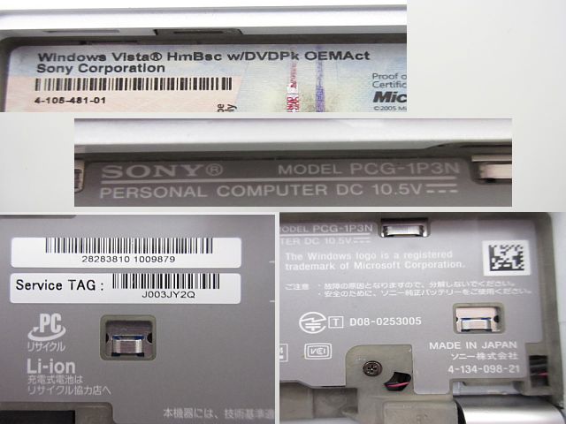 SONY VAIO VGN-P70H アダプター欠品のため動作未確認 現状品 【ジャンク品/部品取り用】