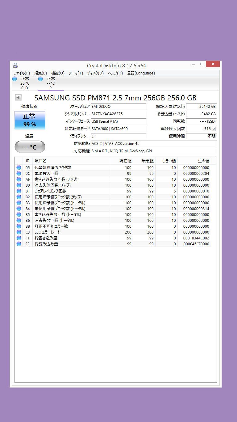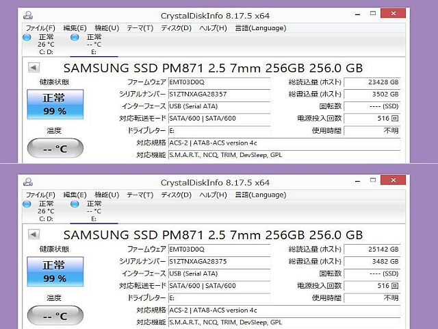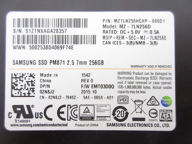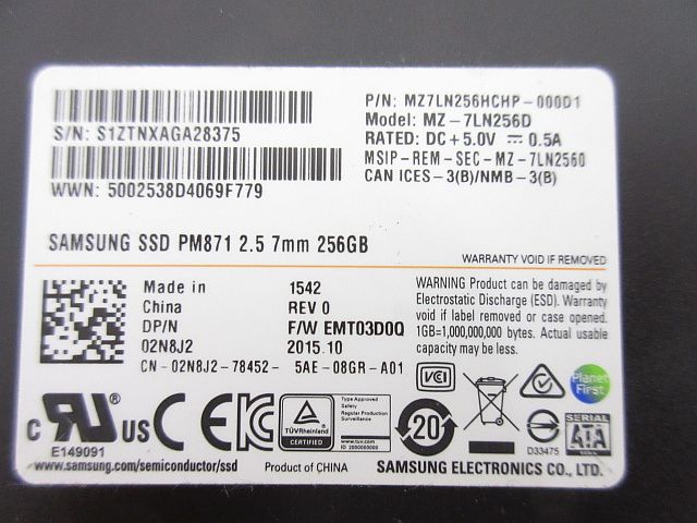 SSD 256GB 2.5インチ SATA★SAMSUNG SSD PM871 2.5 7mm 256GB★フォーマット済 CrystalDiskInfo正常判定 中古/訳あり現状品