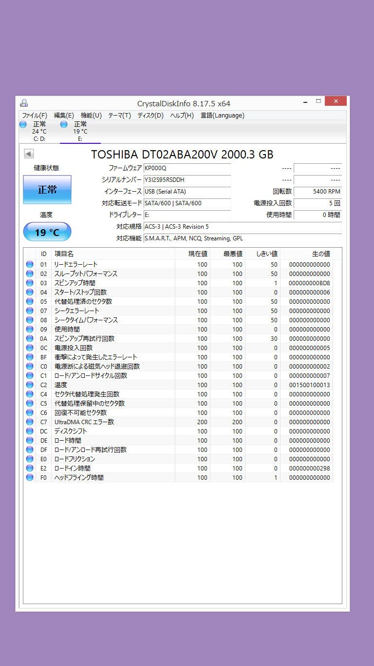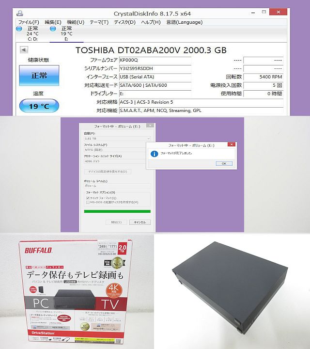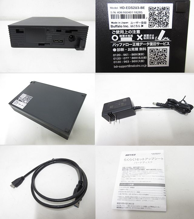 BUFFALO 外付けハードディスク 2.0TB HD-EDS2U3-BE 中古 【美品】 フォーマット済 CrystalDiskInfo正常判定