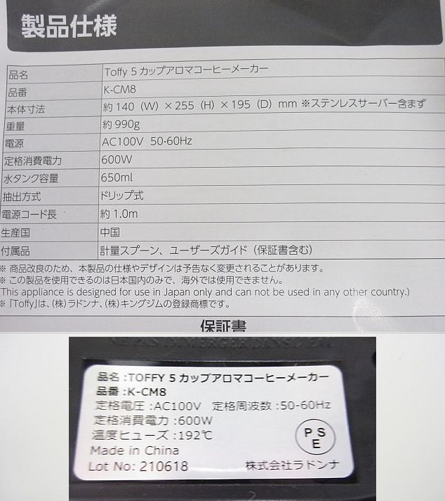 美品★Toffy 5カップアロマコーヒーメーカー カラー:ペールアクア